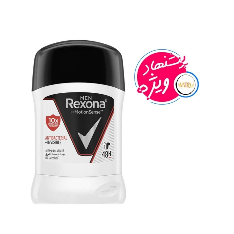 مام استیک ضد تعریق رکسونا آنتی باکتریال اینویزیبل محصولی کاربردی مخصوص آقایان است که هیچ گونه لکی به روی لباس های مشکی و یا سفید نمی اندازد، این مام صابونی Rexona با فرمولاسیون خاص خود فرایند تعریق را کند کرده و با رایحه دلنشین خود از بوی نامطبوع عرق جلوگیری می کند.