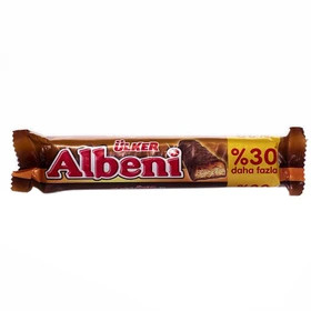 هر شکلات آلبنی دوبل ULKER Albeni وزن 52 گرم دارد و در سایزی ایده آل تهیه شده است . قوام بسیار بالایی دارد. ترکیبات اصلی (شکر، کره کاکائو، پودر شیر، کاکائو. پودر شیر خشک. امولسیفایر (سویا لستین) . (آرد گندم، شکر، روغن گیاهی، شربت گلوکز، پودر شیر. پودر سفیده تخم مرغ. نمک، امولسیفایر (لستین سویا). گلیسرول، امولسیفایر (مونو و دیگریسیرید).